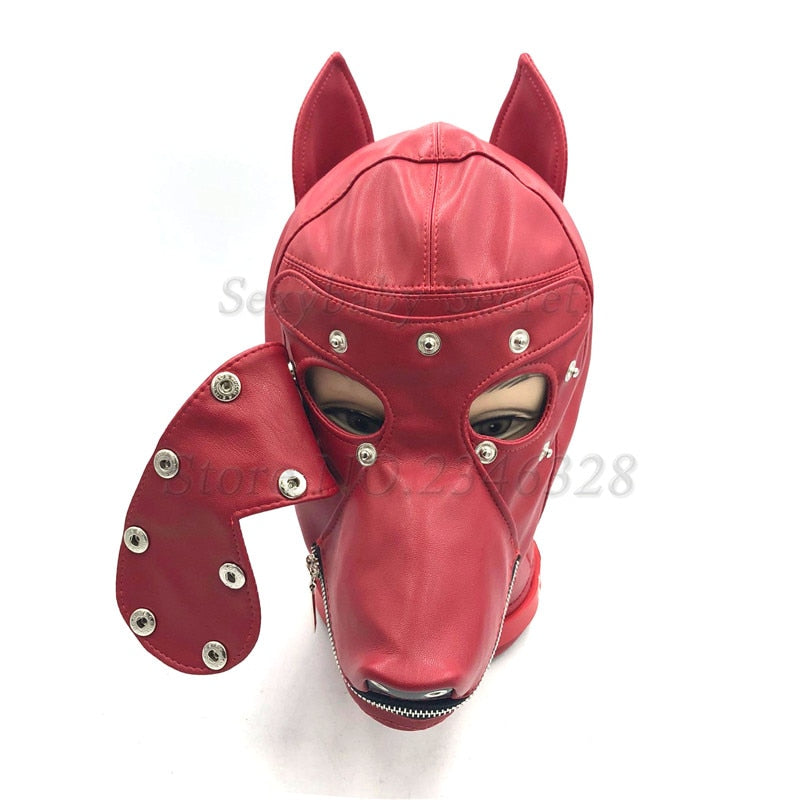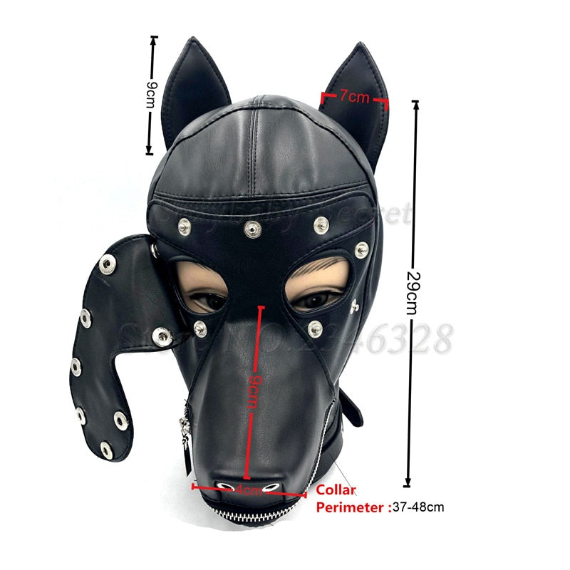 It limits your man's ability to see and even smell with its full-cover hood, concealing the tip of the hair down to the entire neck. It has a detachable blindfold, studded with metal snap buttons, to allow him to glimpse a little, should you feel pity about him not seeing anything. It also features a muzzle that opens as you unzip its zipper. And, completing its canine look are the adorable ears on its top.