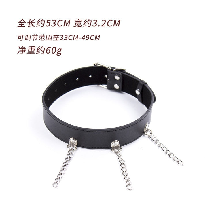 But that's not the exciting feature of this bondage choker. The thing that will surely get your lover's attention is the three metal chains attached to the front part of the collar. Walk towards your partner wearing nothing but this, then turn his chair around, sit on his lap, and start playing or wiggling your tits in front of him. He surely won't resist looking at your chest as the chains sway with your boobs. But be warned: you could get punished because you teased him that much. He could fuck you like a machine for being a bad girl—or maybe he would gag you, tie you to the bed, and torture and tug your nipples as he bangs you non-stop. That would be a delightful punishment!