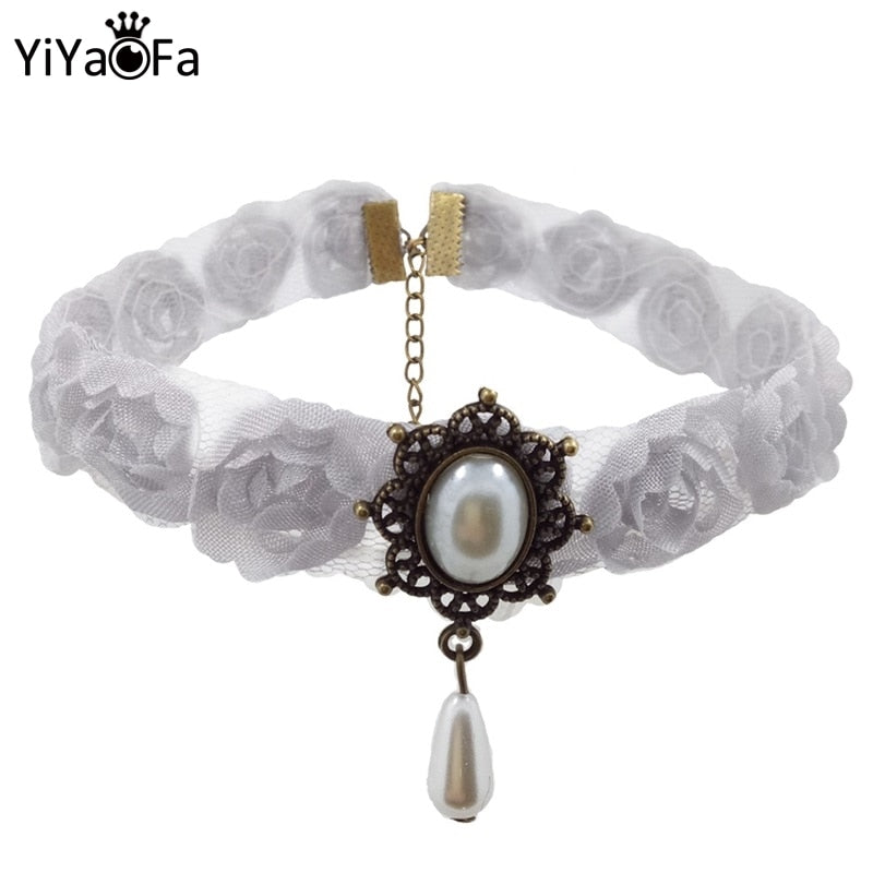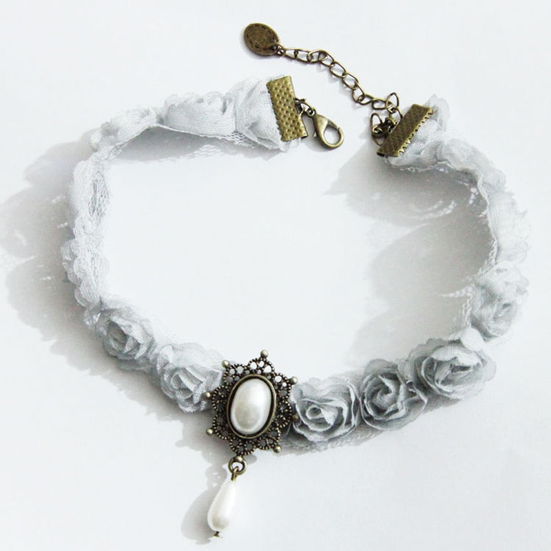 Delight her with the Classy BDSM Princess Collar, and watch her eyes glow with excitement. And why not? The elegant piece suits her princess status, but it still symbolizes her submission. The collar features a white mesh band embellished with white lacy roses. In its center lies a stunning pendant featuring pearls with intricate vintage alloy adornment. The egg-shaped pearl is placed right at the center of the alloy piece from which another pearl dangles gracefully.